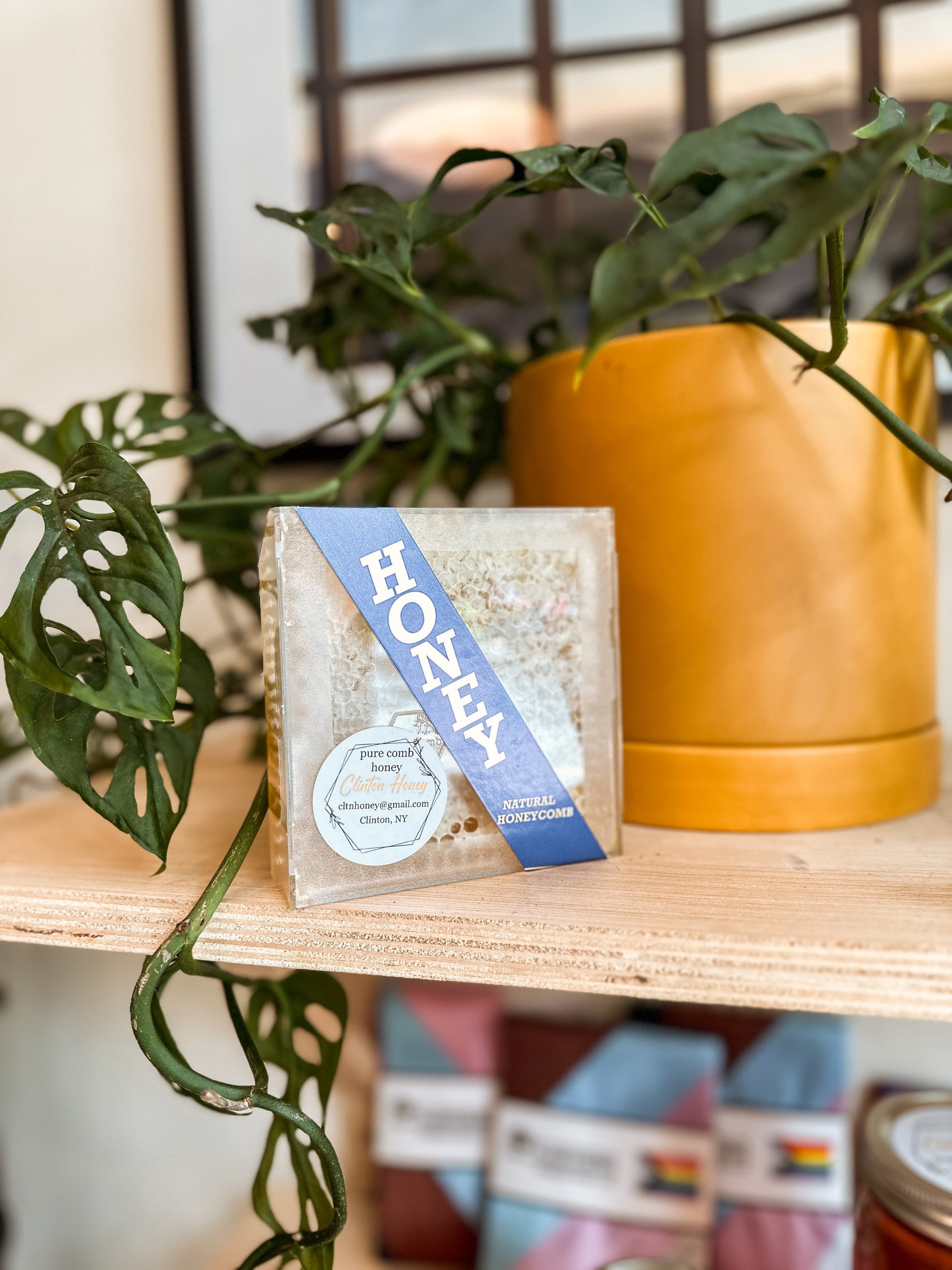 Clinton Honey is a small, woman-owned, honeybee farm, located just outside the Clinton village. We nurture our bees using all-organic practices. We also raise honeybees at Kingfisher Farm, an organic CSA fruit and veggie farm in Sauquoit, NY. Although bees forage where they will (up to 2 miles), we never use non-organic chemicals on the grounds that they call home.