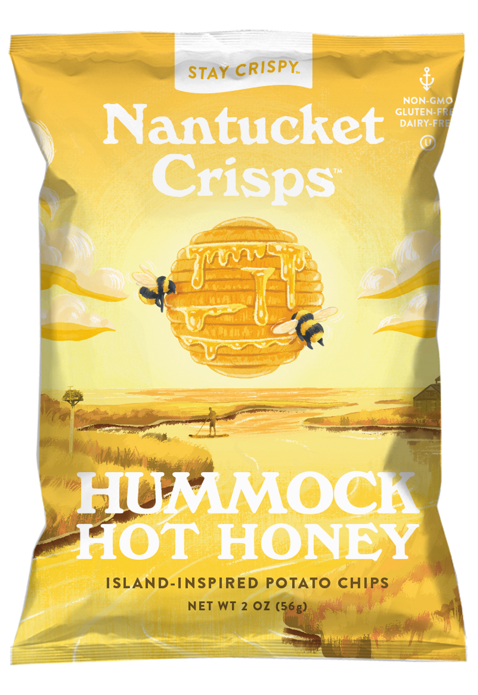 Experience the fiery flavor of Nantucket Crisps' Hummock Hot Honey 2oz. This savory snack is more than just a chip, it's a culinary journey. Inspired by the unique tastes of Nantucket's beaches, these chips are crafted to embody the island's spirit. As with all our products, Hummock Hot Honey is NON-GMO, Kosher, and Dairy-Free, making it a delightful and inclusive snack for all. When you choose Nantucket Crisps, you're not just enjoying a delicious treat, you're also supporting the preservation of the North Atlantic Right Whale. Taste the essence of Nantucket today.