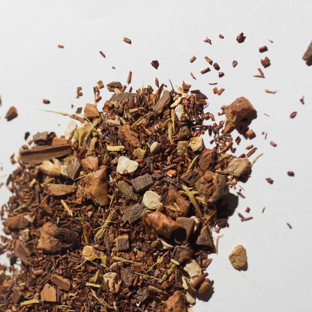 Ingredients: Rooibos, Cinnamon, Apple Pieces, Orange Peel, Licorice Root, Apple Cinnamon French Toast Flavoring